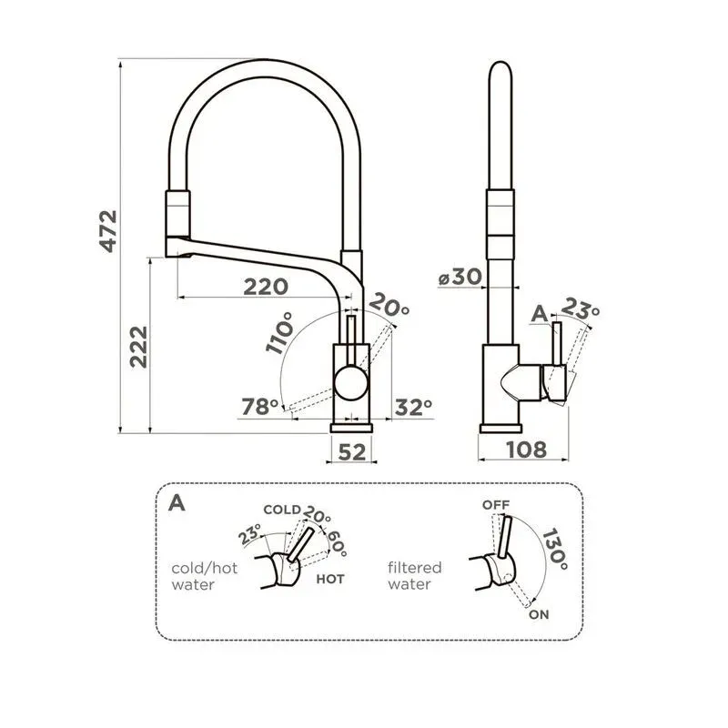 Смеситель Omoikiri Sinto 2 Plus LG-BL 4994469 для кухонной мойки, с подключением к фильтру, цвет... Подробнее
