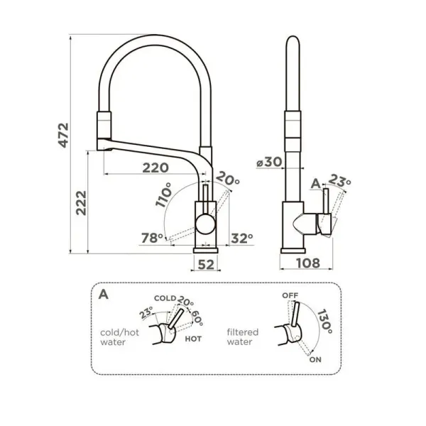 • Технология PURE LIFE: Подключение фильтра для очистки воды. Фильтрованная вода подается по отдельной трубке и не смешивается с водопроводной водой;