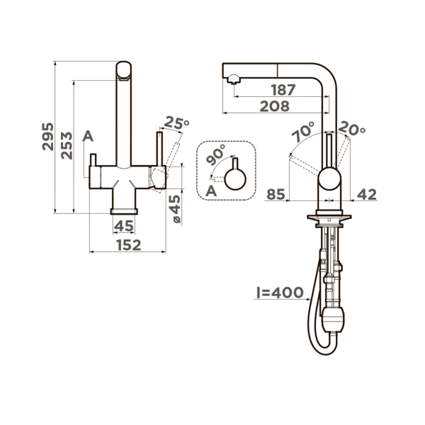 • Выдвижной излив: