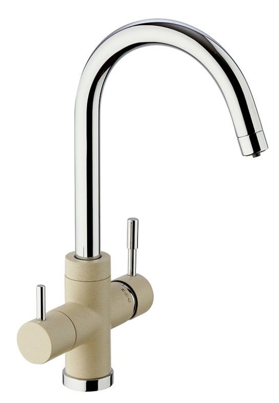 Оптимизируем мокрую зону на кухне со смесителем PAINI COX на 3 воды! Однорычажный смеситель классической формы, но с одной важной деталью: фильтр для воды подключается прямо к смесителю. Легкий монтаж без дополнительных отверстий в столешнице, теперь для доступа к питьевой воде нужно просто повернуть рычаг на корпусе смесителя. Смеситель представлен в необычных цветах, что дает простор творчеству и позволяет сочетать его с мойками и кухонной мебелью разных фактур и материалов.Разнообразие цветаТри варианта бежевого цвета: сахара, бежевый с вкраплениями (гранит) и нежный трюфель, а также белый с вкраплениями (гранит) и комбинация черного и хромого цветов в корпусе смесителя. Теперь точно получится попасть в цвет столешницы и/или цвет мойки либо создать контрастные сочетания. Все варианты покрытия, включая покрытие под камень, выполнены по специальной технологии, сохраняющей цвет и фактуру надолго и облегчающей уход за смесителем.3 воды в одном корпусеПодключение фильтра для воды прямо к смесителю.Европейское качествоСделано в Италии. Гарантия – 5 лет.Технологии гарантируют долгий срок службыФабрика «Паини» использует только лучшие комплектующие. Аэратор Neoperl наполняет поток воды кислородом, увеличивает напор, экономя воду. Одно движение пальцем для очистки сеточки. Керамический картридж Nuovo Galatron – основа, необходимая для долгой работы смесителя.Легкая уборкаНесколько движений – и готово. Мыльная губка и сухая тряпочка – все, что нужно для уборки.
