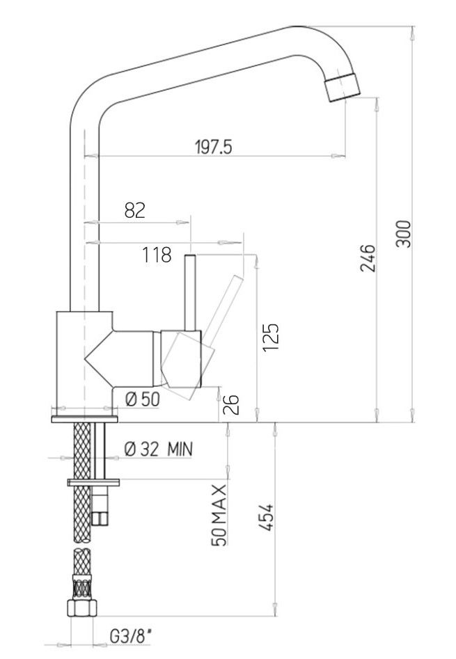 • Высота смесителя: