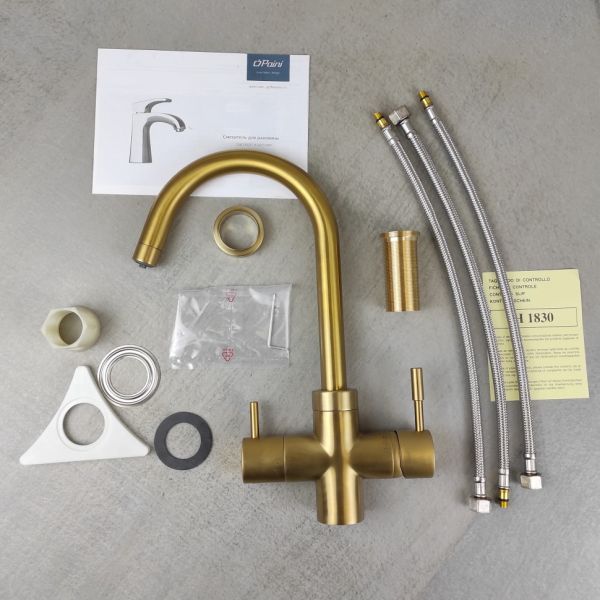 Смеситель для кухни Paini Cox 78PJ6433VL2KM с подводом для фильтра матовое золото