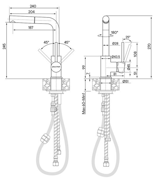 Смеситель для кухни с выдвижным шлангом, Ka214311-302Изготовлен из высококачественной латуни, которая отвечает высочайшим европейским стандартам качества, не содержит свинца, не разрушается со временем и безопасна для здоровья.Вытяжной шланг