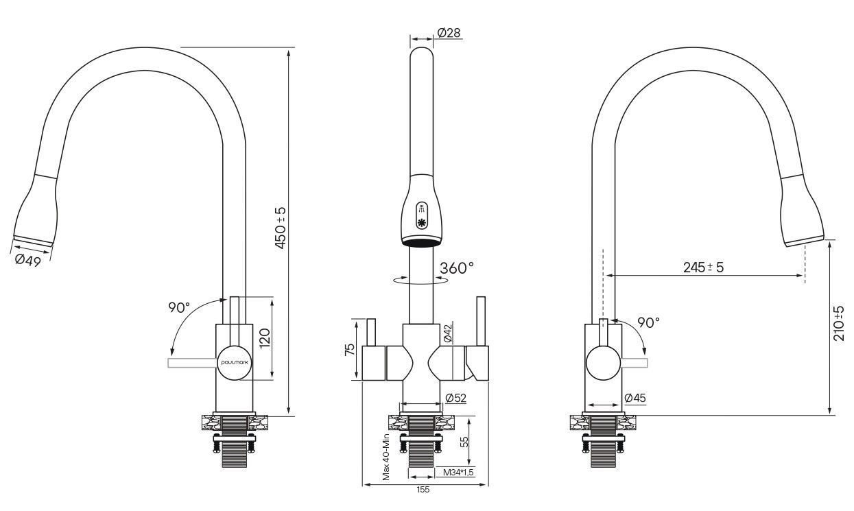 Смеситель для кухни Paulmark Lange La214212-GM воронёная сталь купить