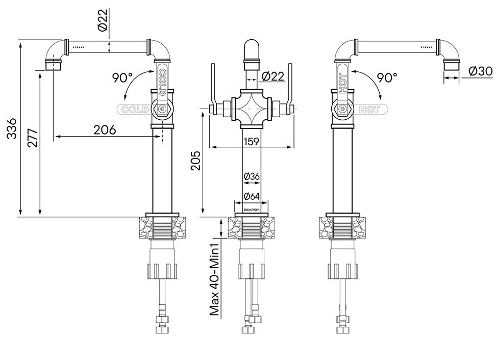 • Высота смесителя: