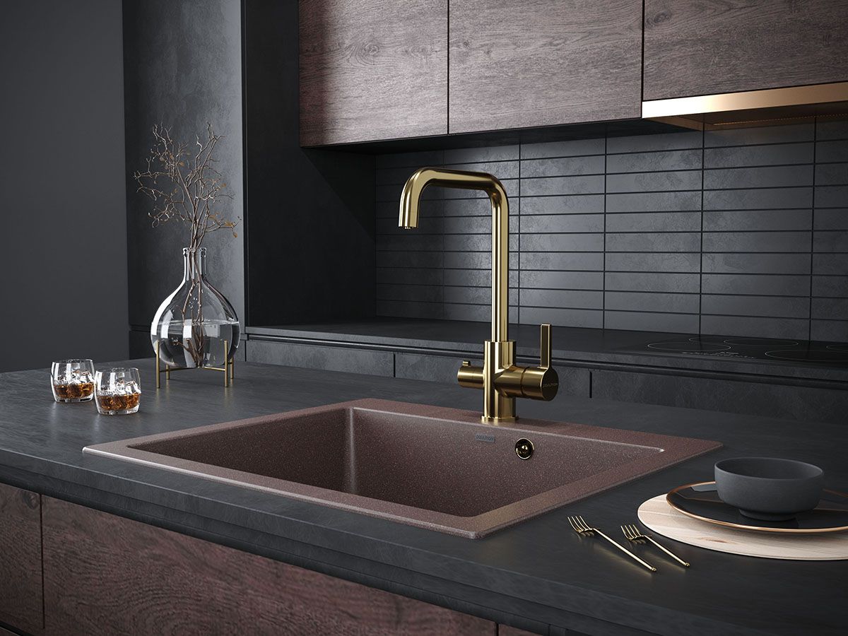 Смеситель для кухни, с возможностью подключения фильтра питьевой воды, Lo213021-GТехнология Trinkwasser® - подача фильтрованной питьевой воды