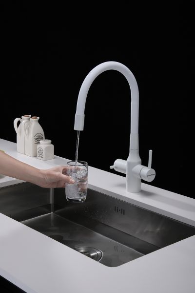 Смеситель под фильтр с гибким изливом, артикул Sa213419-431Смеситель для кухни с возможностью подключения фильтра питьевой воды, эластичный излив с фиксацией.
