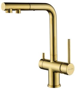 Смеситель для кухни с выдвижным изливом и возможностью подключения фильтра питьевой воды, артикул Se213222-GИзготовлен из высококачественной латуни, которая отвечает высочайшим европейским стандартам качества, не содержит свинца, не разрушается со временем и безопасна для здоровья.Смеситель для кухонной мойки SERPENTINE изготовлен из высококачественной латуни в классическом дизайне с изливом Г-образной формы. Излив поворотный на 180. Высота излива – 330 мм.