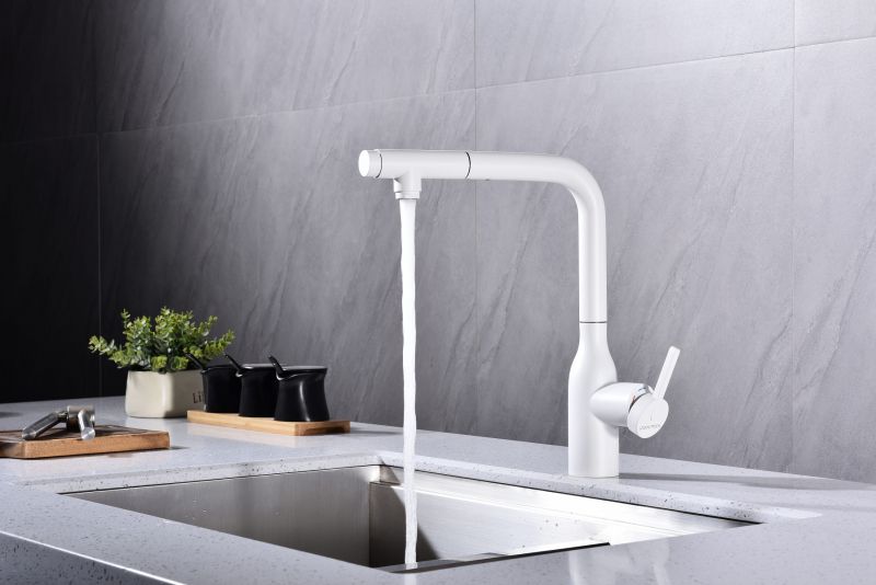 Высокий Г-образный излив с функцией вращения на 360 градусов обеспечивает удобство использования. Выдвижная часть излива способна обеспечить максимально комфортную эксплуатацию и экономный расход воды.