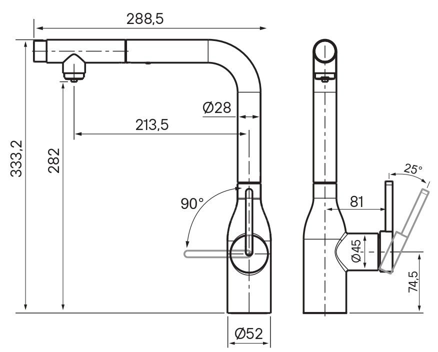 Высокий Г-образный излив с функцией вращения на 360 градусов обеспечивает удобство использования. Выдвижная часть излива способна обеспечить максимально комфортную эксплуатацию и экономный расход воды.