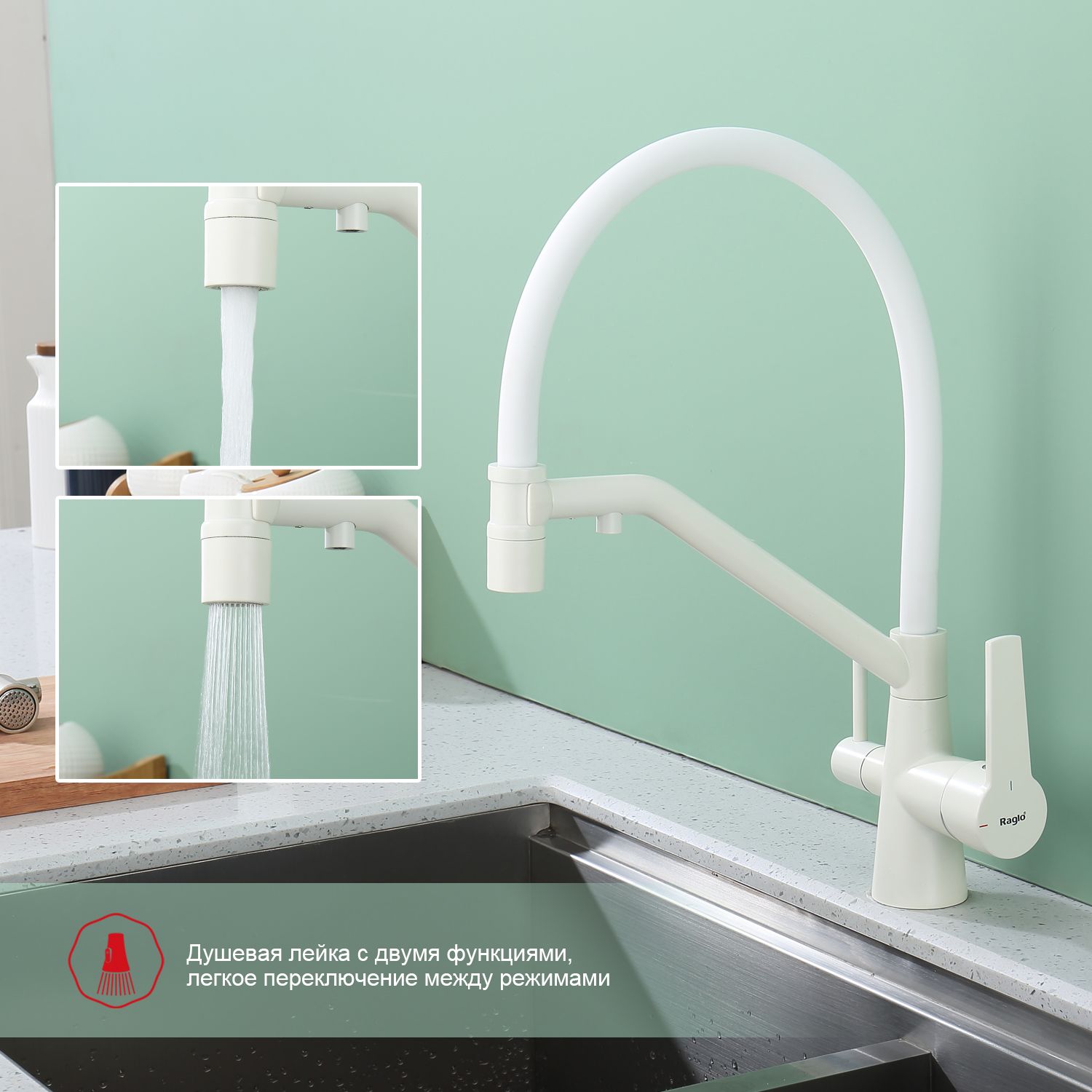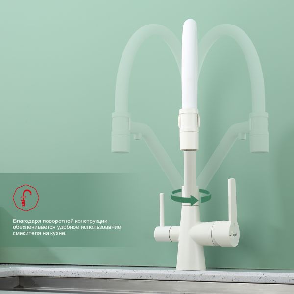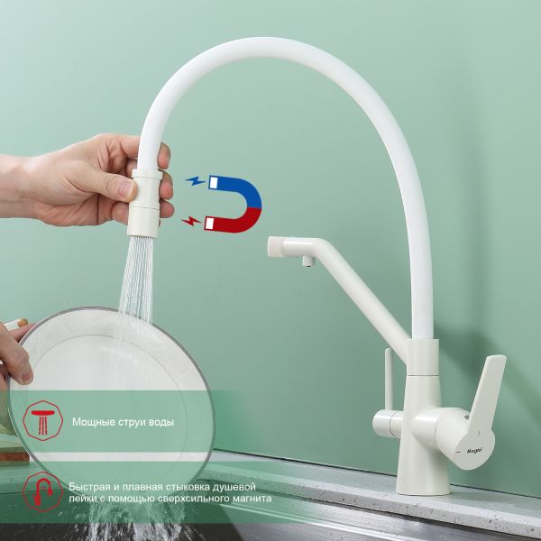 Смеситель для кухни Raglo R80.62.08 с подключением фильтра белый