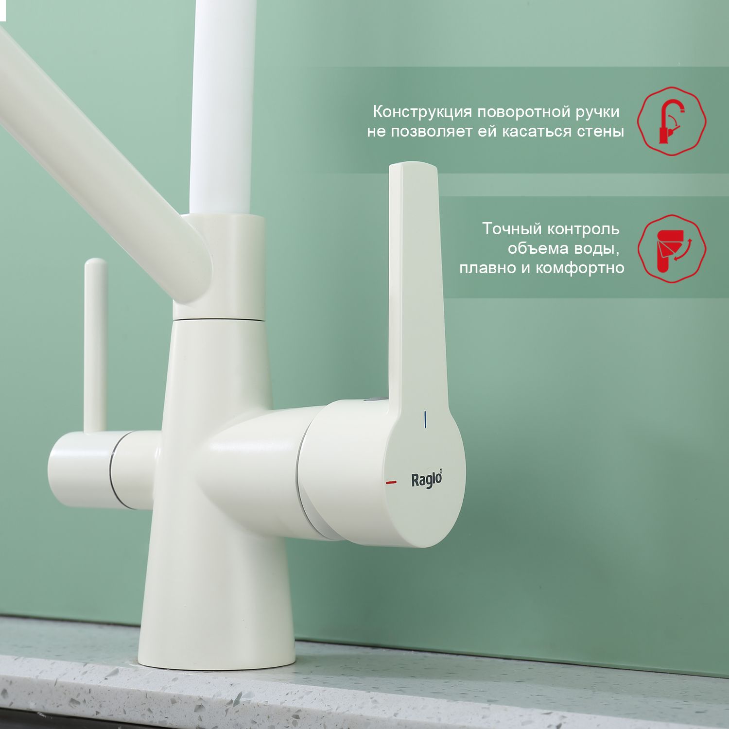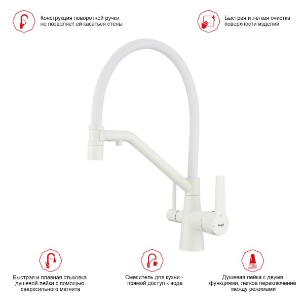 Смеситель для кухни Raglo R80.62.08 с подключением фильтра белый купить