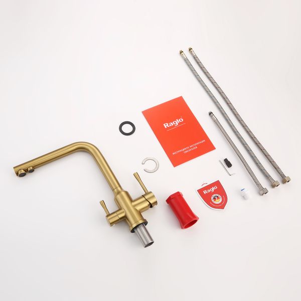 Смеситель для кухни Raglo R81.61.03 с подключением фильтра золотой сатин купить