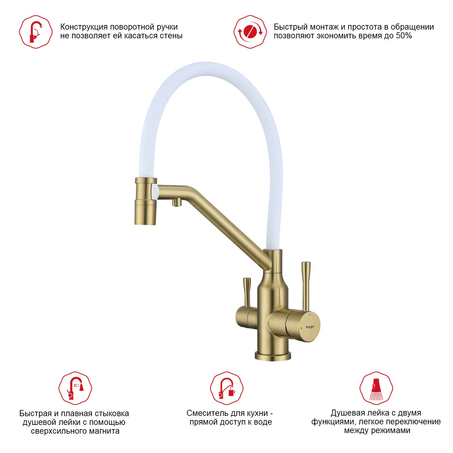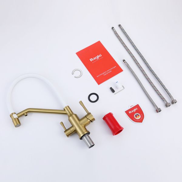 Смеситель для кухни Raglo R81.62.03 с подключением фильтра золотой сатин купить
