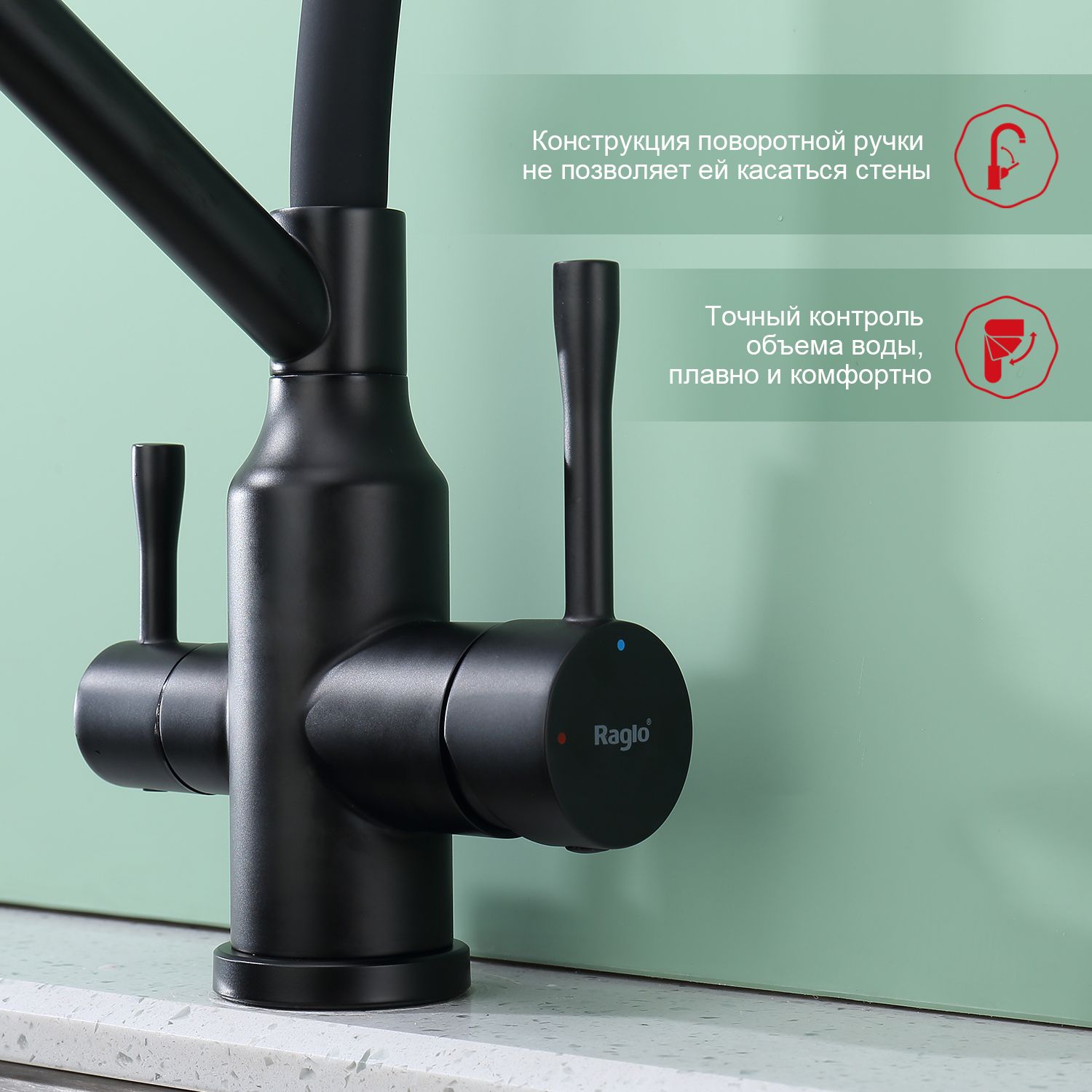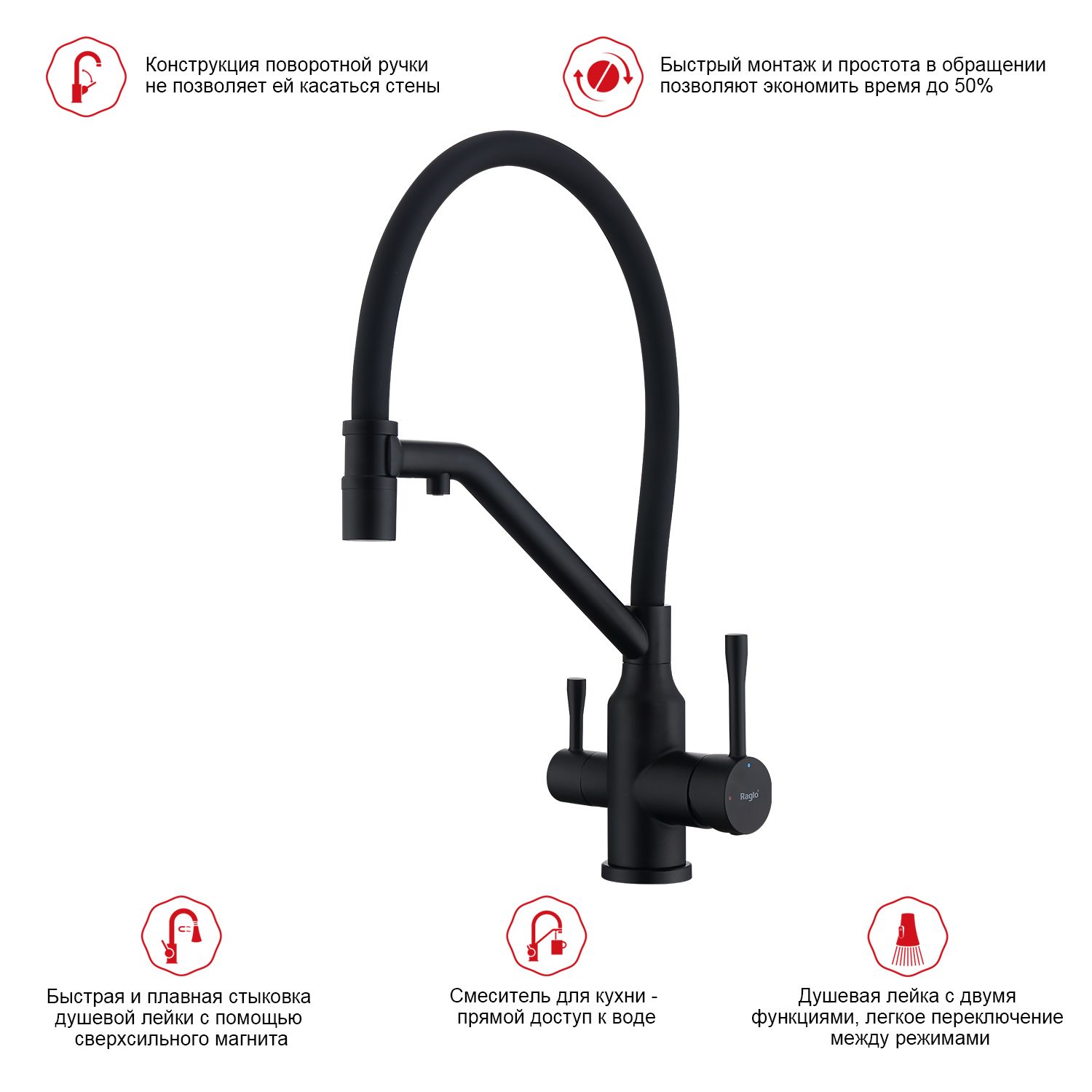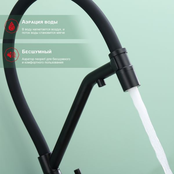 Смеситель для кухни Raglo R81.62.06 с подключением фильтра чёрный купить