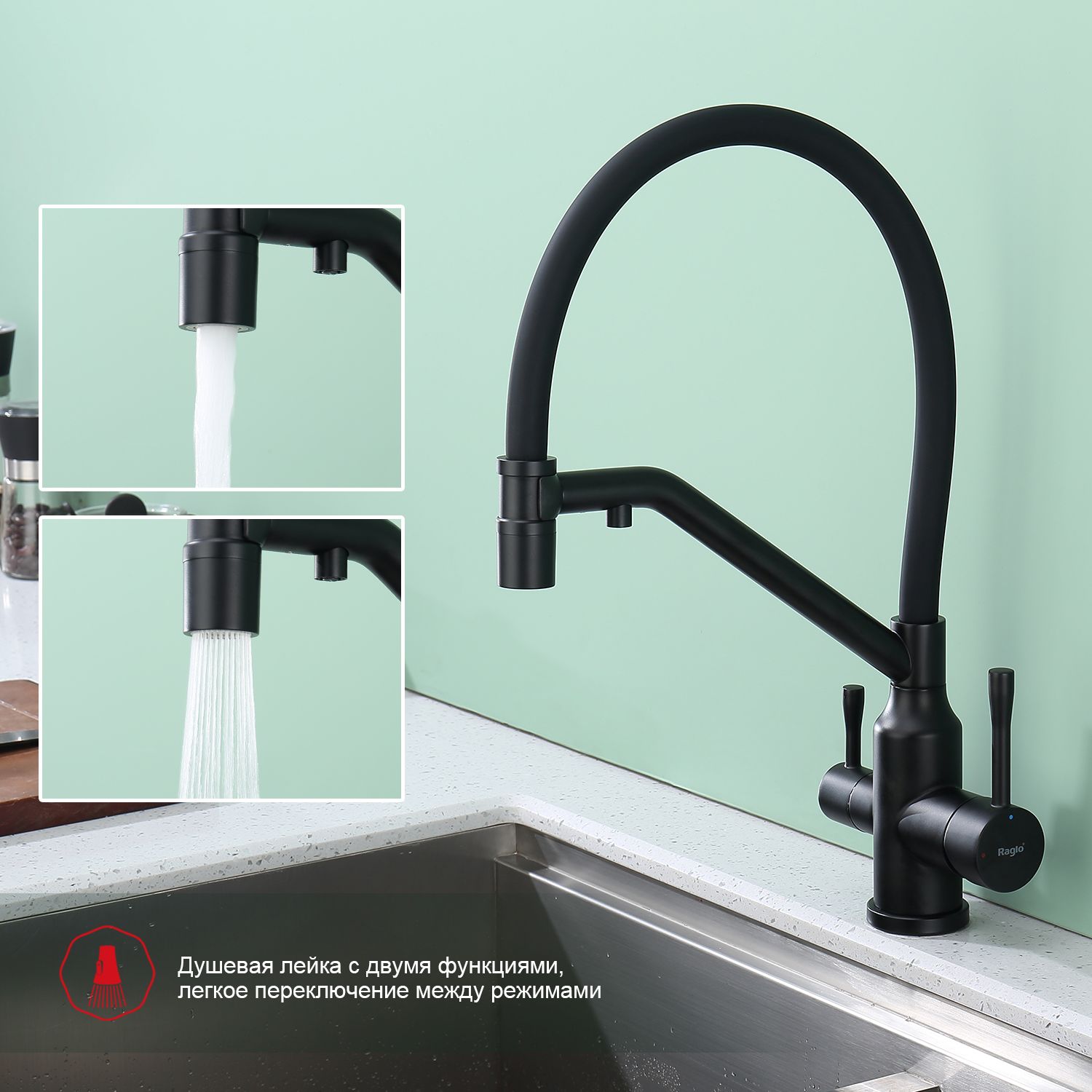 Смеситель для кухни Raglo R81.62.06 с подключением фильтра чёрный