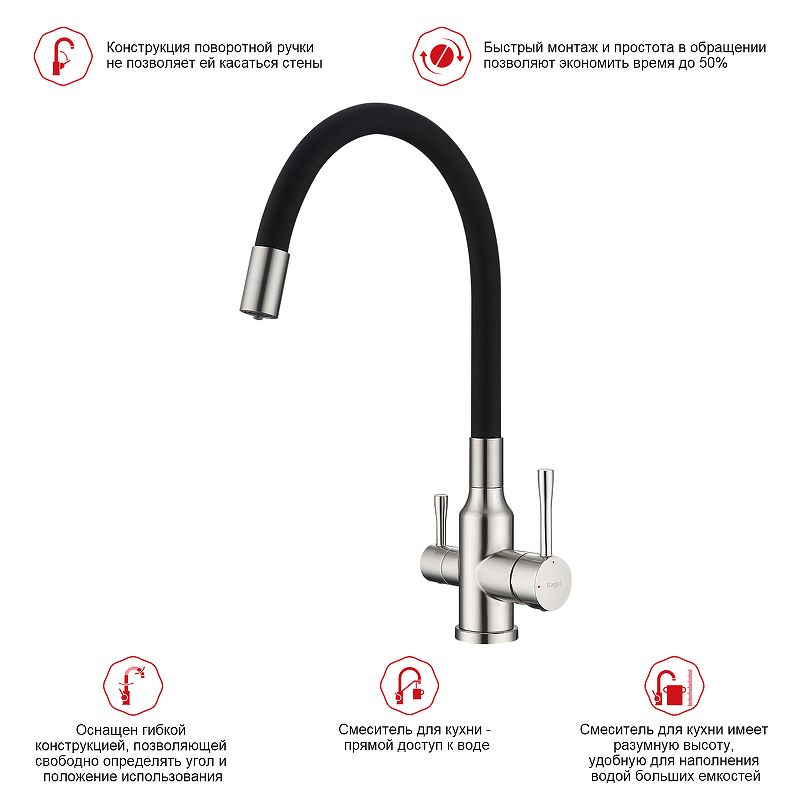 Смеситель для кухни Raglo R81.64.05 с подключением фильтра сатин купить