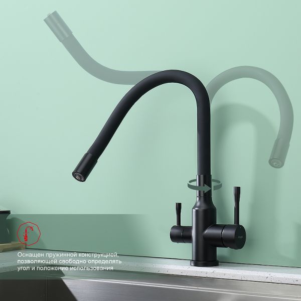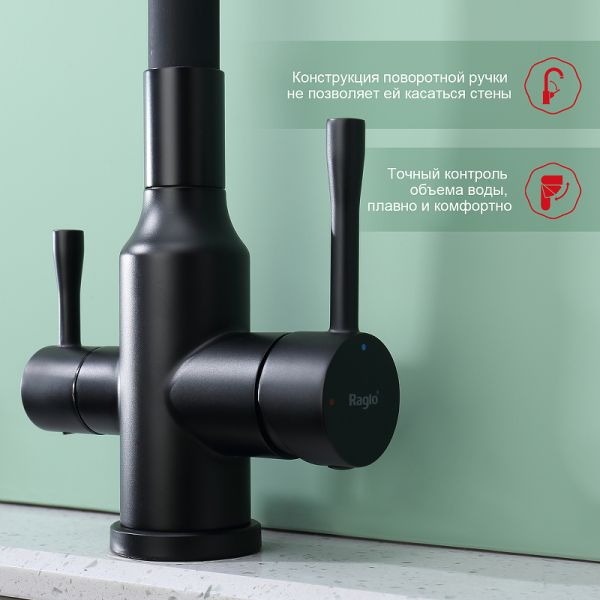 Смеситель для кухни Raglo R81.64.06 с подключением фильтра чёрный купить