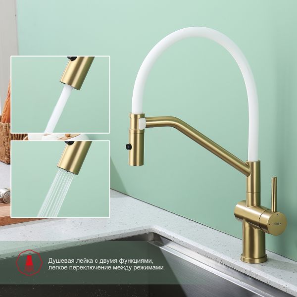 Смеситель для кухни Raglo R86.41.03 со съемным изливом на магните золотой сатин
