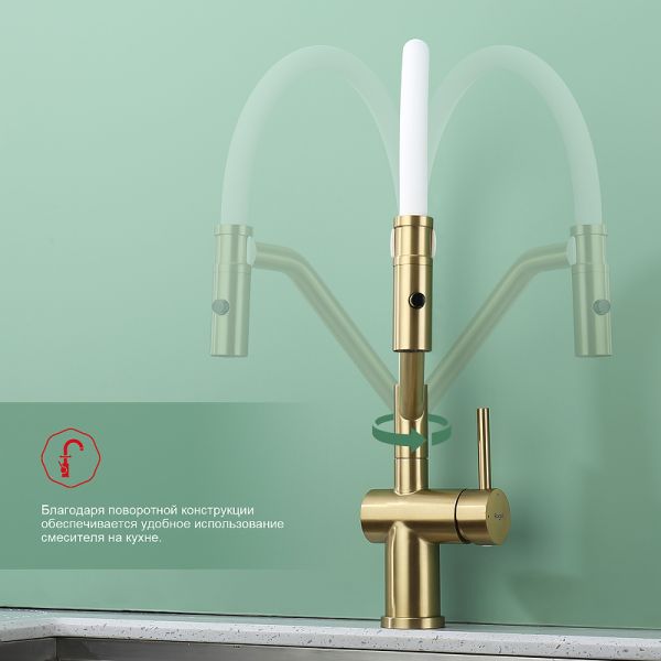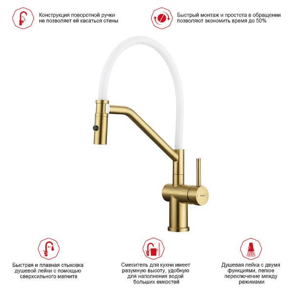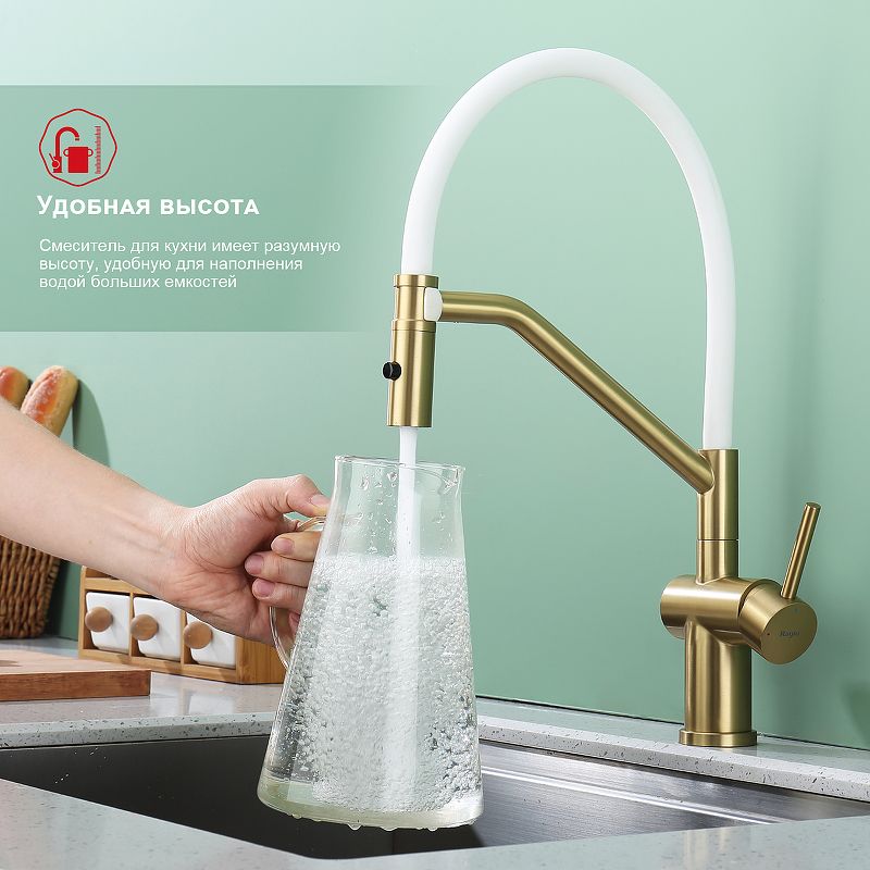 Смеситель для кухни Raglo R86.41.03 со съемным изливом на магните золотой сатин купить