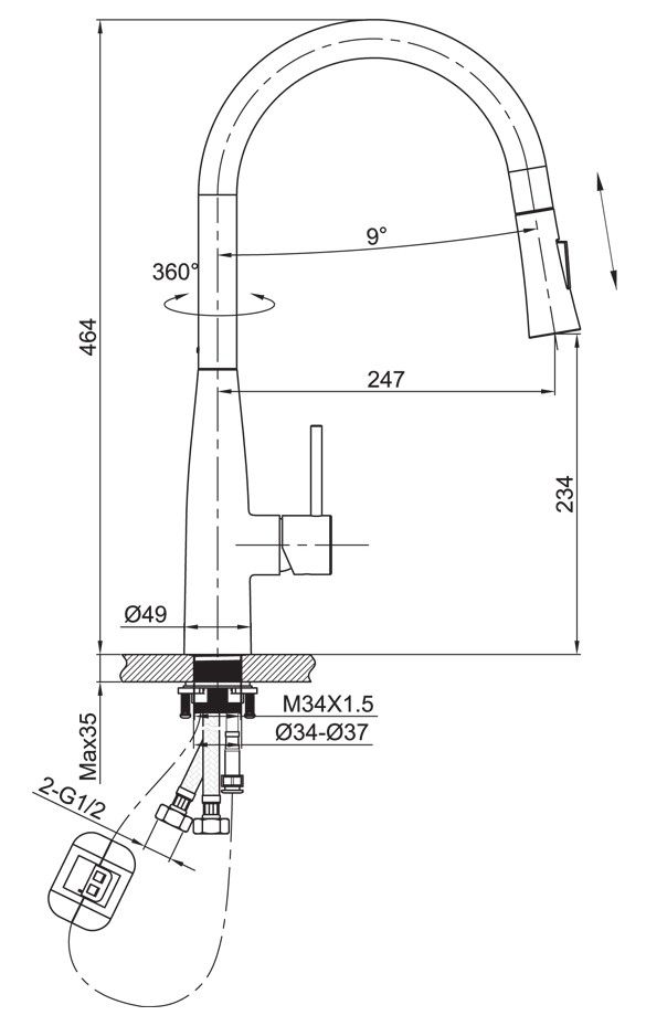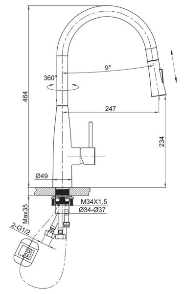 Высота смесителя:46.4
