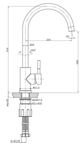 Высота смесителя:37.4