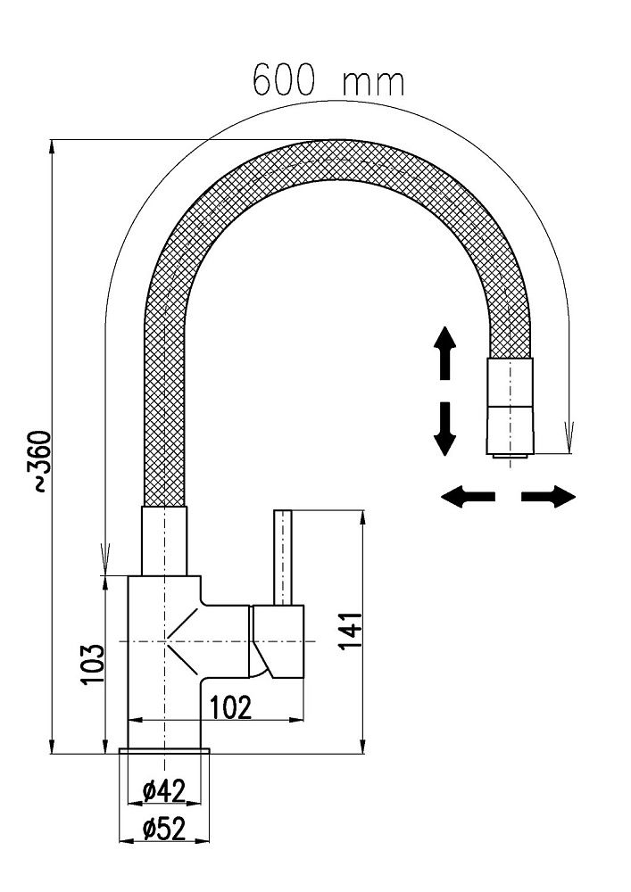 • Гибкий излив: