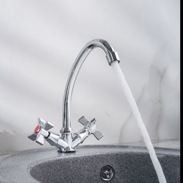 Стильный двуручковый смеситель для кухни с высоким поворотным изливом станет эффектным и эффективным решением для вашего интерьера.