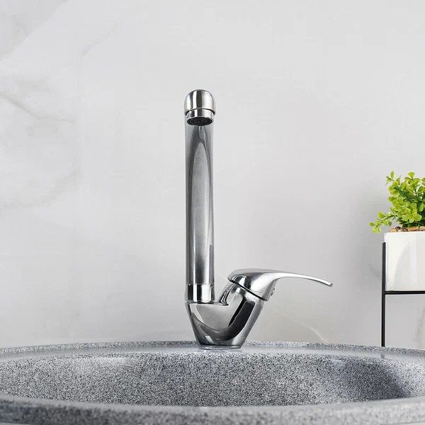 Классический однорычажный смеситель для кухни с высоким поворотным изливом обладает лаконичной ручкой регулировки температуры воды, отлично подойдет для оснащения любой раковины.