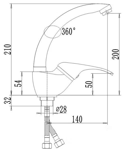 • Высота смесителя: