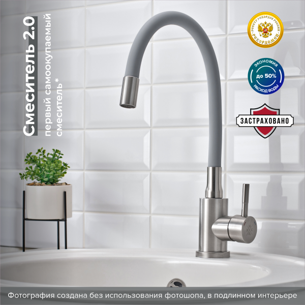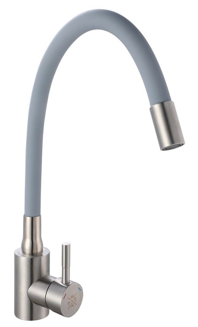 Одноручковый смеситель для кухни из нержавеющей стали с гибким изливом прост и удобен в использовании.