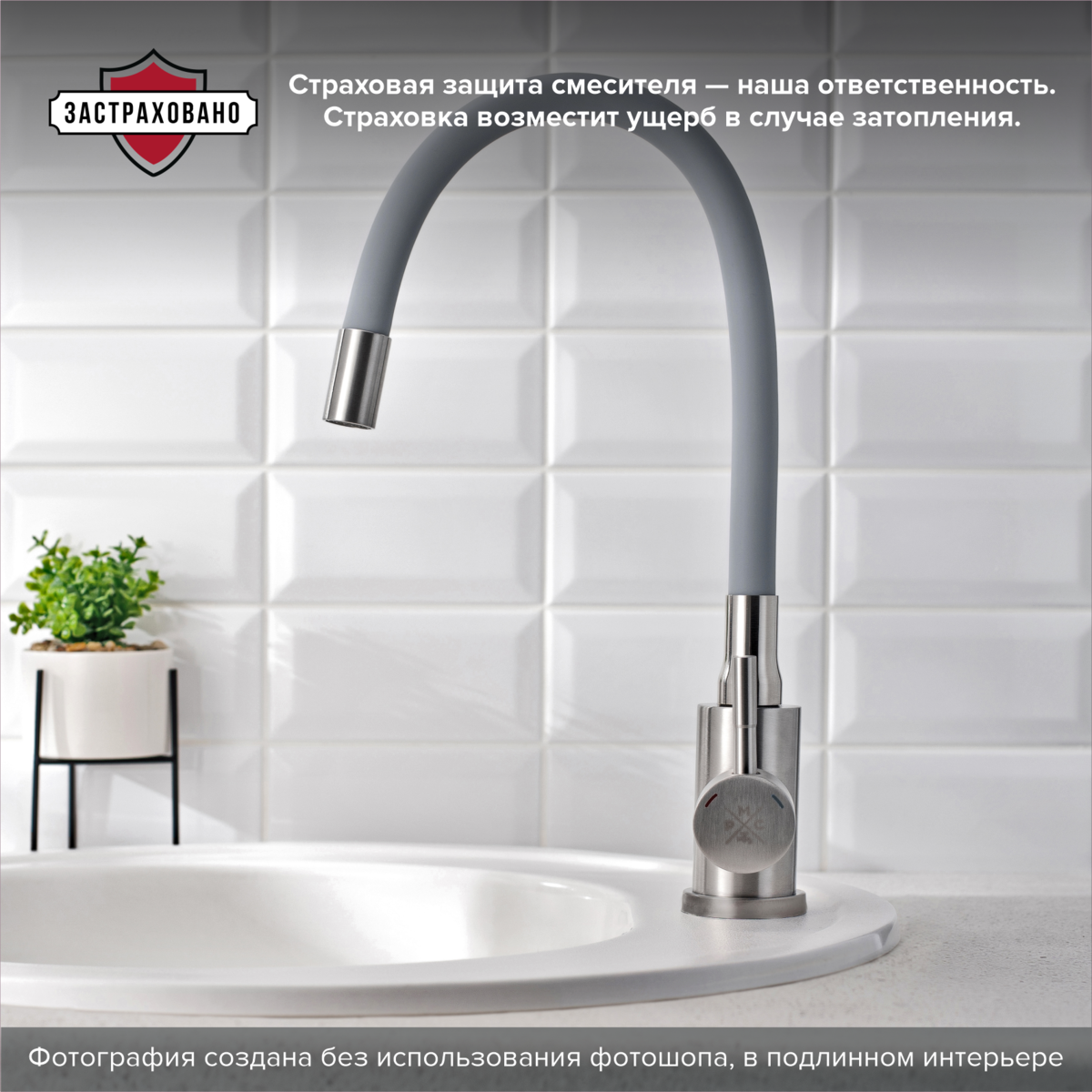 Смеситель для кухни с высоким гибким изливом