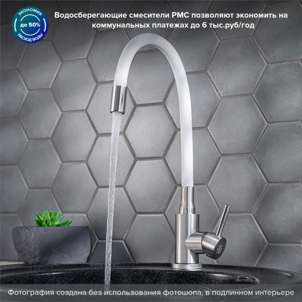 Смеситель для кухни РМС SUS124W-016F белый/нержавеющая сталь