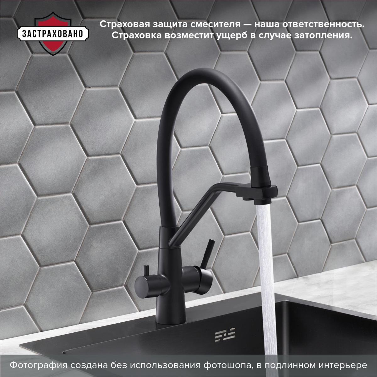 Смеситель для кухни РМС SUS127TBL-016F-015 с подключением фильтра чёрный купить