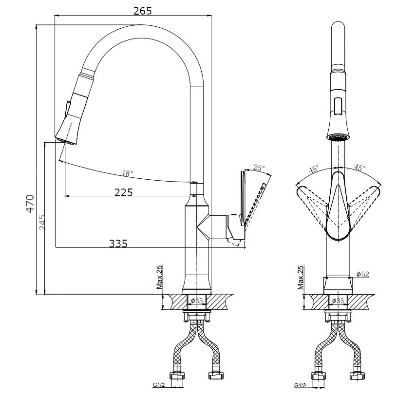 Смеситель для кухни RUSH арт. DN0335-23 с поворотным изливом и вытяжной лейкой из коллекции ... Подробнее