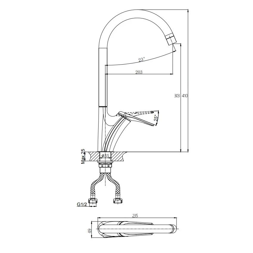 - Длина излива, см:20.30