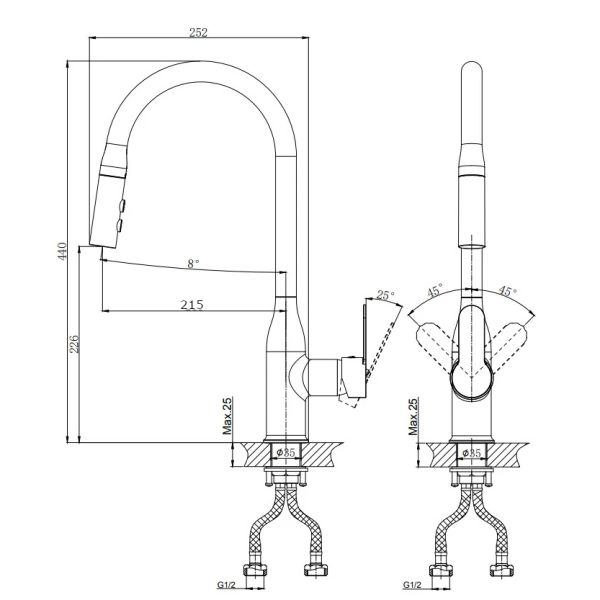 • Выдвижной излив: