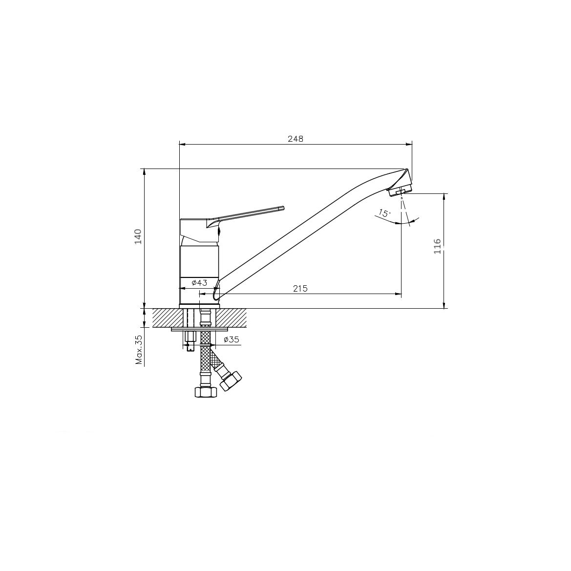 Смеситель для кухни RUSH арт.HA1935-25 с поворотным изливом из коллекции Haiti изготовлен из высококачественной латуни и имеет рычажное управление. В смеситель установлен картридж D-35 с керамическими пластинами. Высота смесителя 140 мм. Излив поворотный, 215 мм. Высота излива до аэратора 116 мм. Аэратор изготовлен из пластика с нержавеющим корпусом, угол наклона аэратора- 15 гр. В комплекте гибкая подводка с латунными гайками 35 см - 2шт, универсальная присоединительная группа для установки на горизнтальную поверхность, фум-лента, индивидуальный пакет, паспорт, гарантийный талон.