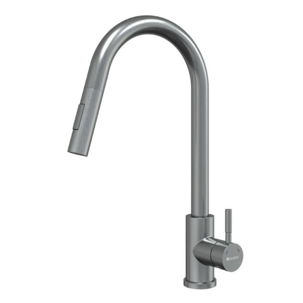 Смеситель с выдвижным изливом из нержавеющей стали идеально подходит для современных кухонь. Матовая поверхность устойчива к износу. Смеситель для кухни с выдвижным изливом и режимом "душ" Knotlor STREAMLINE SS-09 — это идеальное сочетание современного дизайна и практичности для вашей кухни. Изготовленный из высококачественной нержавеющей стали, он не только выглядит стильно и элегантно, но и отличается исключительной прочностью и долговечностью. Выдвижной излив обеспечивает максимальный комфорт при использовании, позволяя легко настроить струю воды под ваши нужды. Рычажное управление с керамическим картриджем обеспечивает плавное и точное регулирование температуры и напора воды. Особенностью модели является выдвижной излив с режимом "душ": стандартная струя через аэратор для повседневного использования и режим “душ” для удобного мытья овощей и фруктов. Стильный и функциональный дизайн гармонично впишется в интерьер любой кухни, создавая удобство и комфорт при использовании смесителя. Не откладывайте покупку кухонного смесителя Knotlor STREAMLINE SS-09 - сделайте свою кухню еще более удобной и современной уже сегодня!