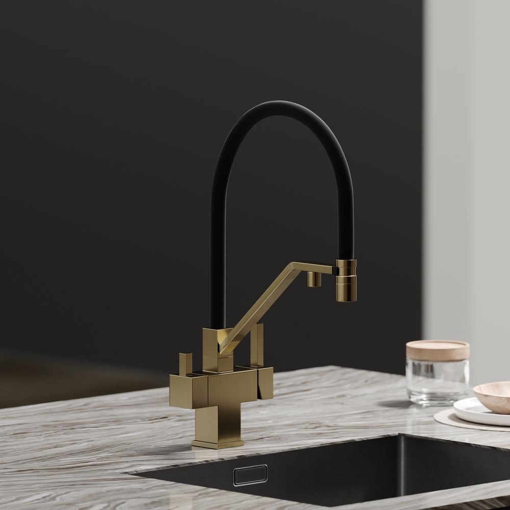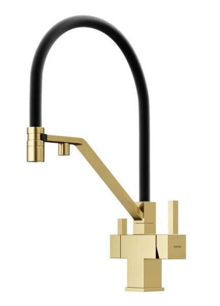 Смеситель для кухни SANCOS Loro с гибким изливом и возможностью подключения фильтра для воды, цвет брашированное золото, арт. SC4007BGФункция "Холодный старт" - при включении смесителя активируется холодной поток, для экономии горячей водыАэратор, гибкая подводка, ключ и крепления для монтажа