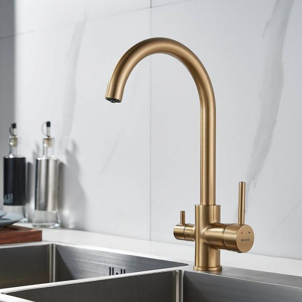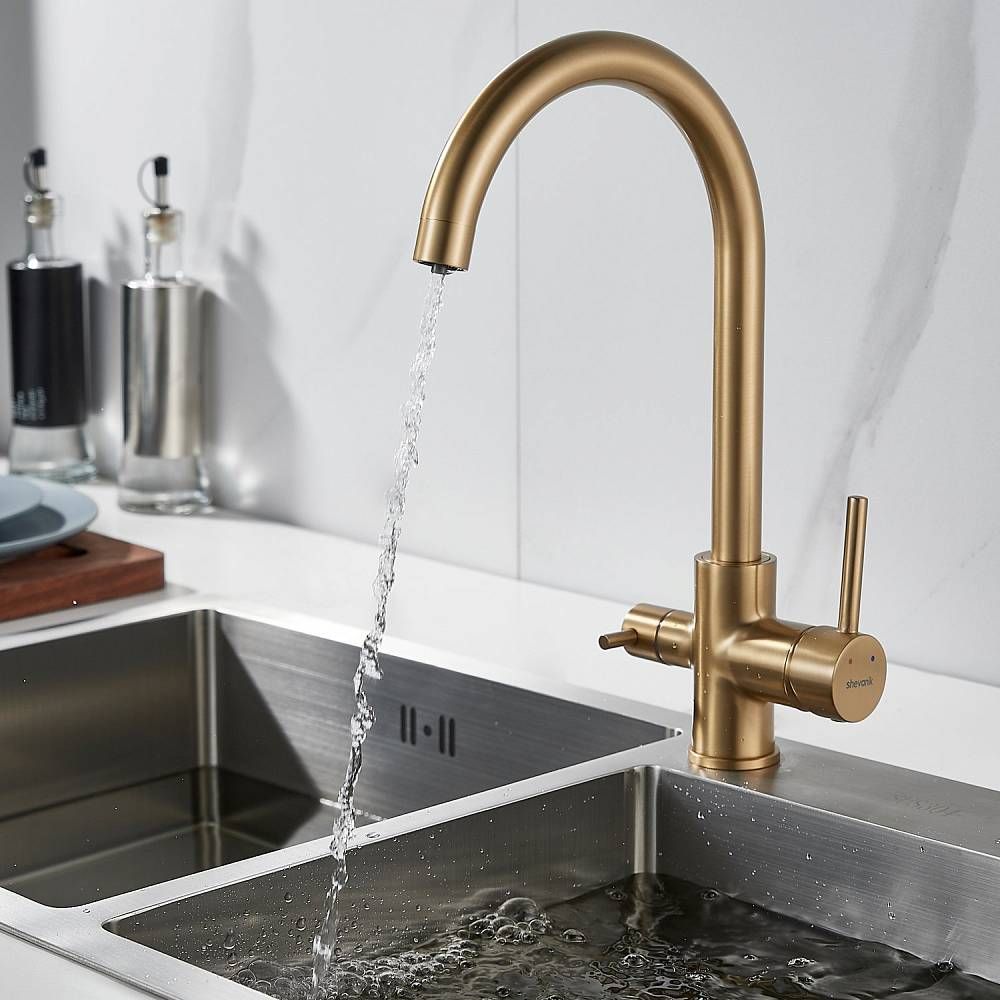 Смеситель для кухни Shevanik S128G с подключением фильтра золотой сатин купить