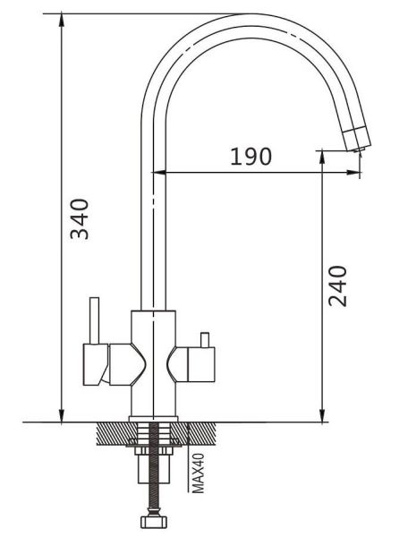 • Высота смесителя: