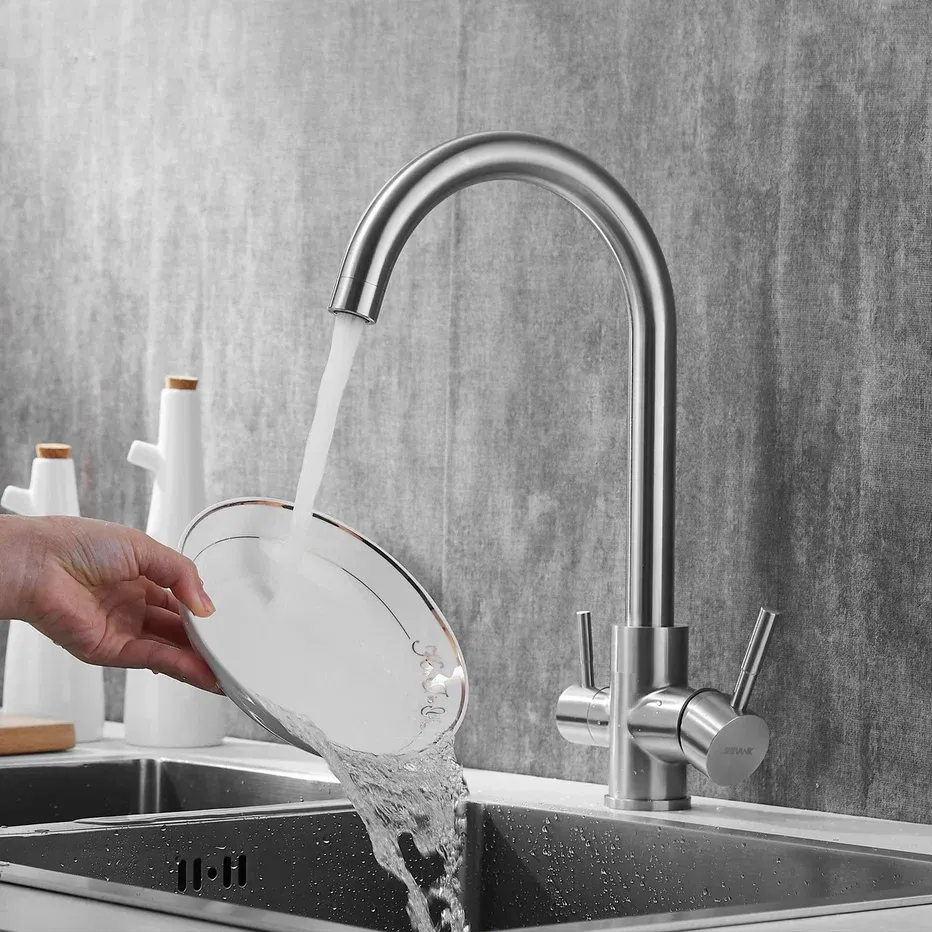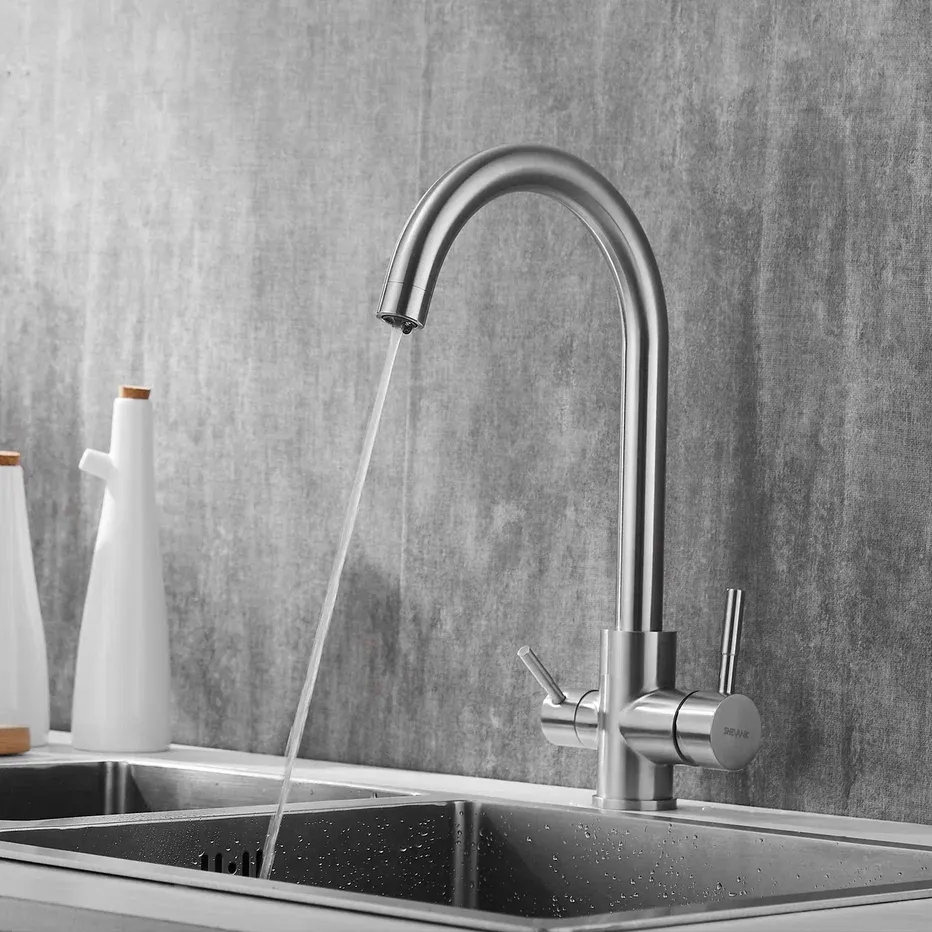 Смеситель для кухни Shevanik S168B с подключением фильтра сатин купить