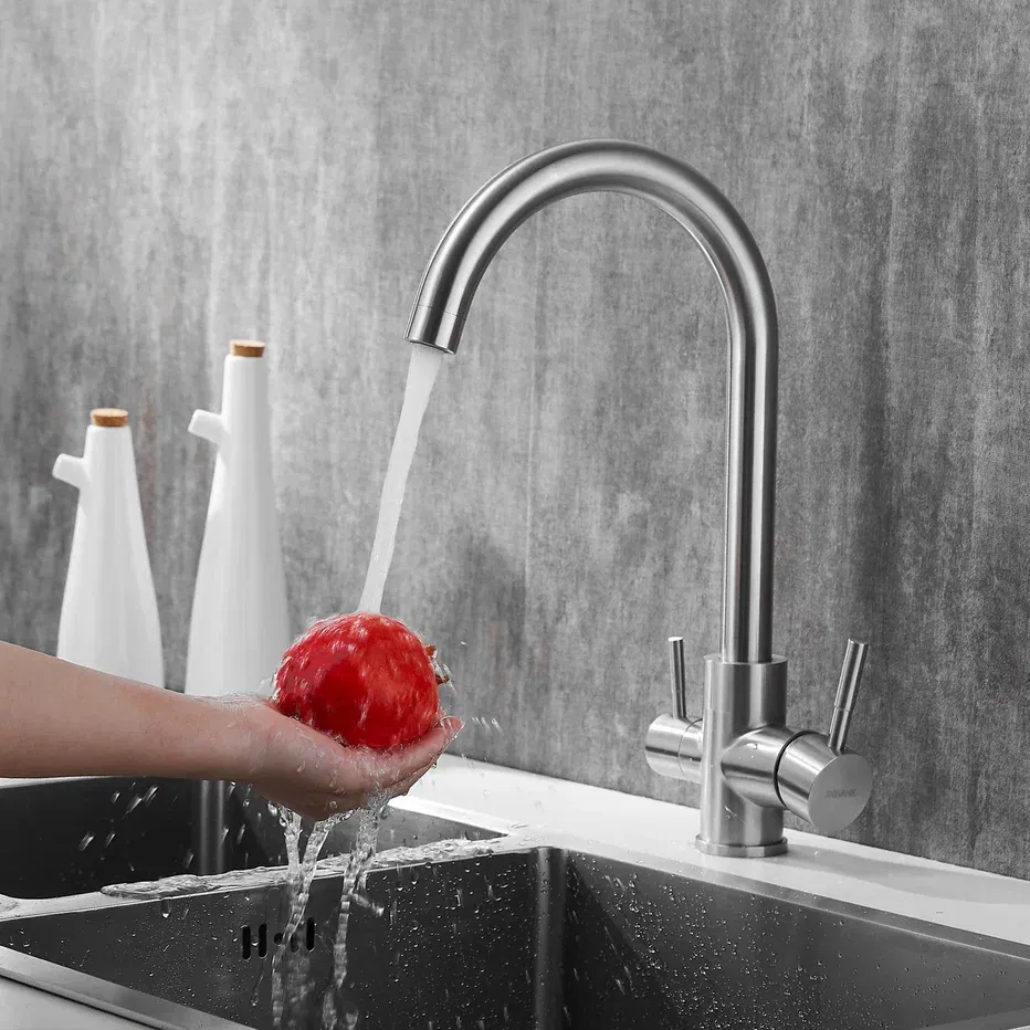 Смеситель для кухни Shevanik S168B с подключением фильтра сатин