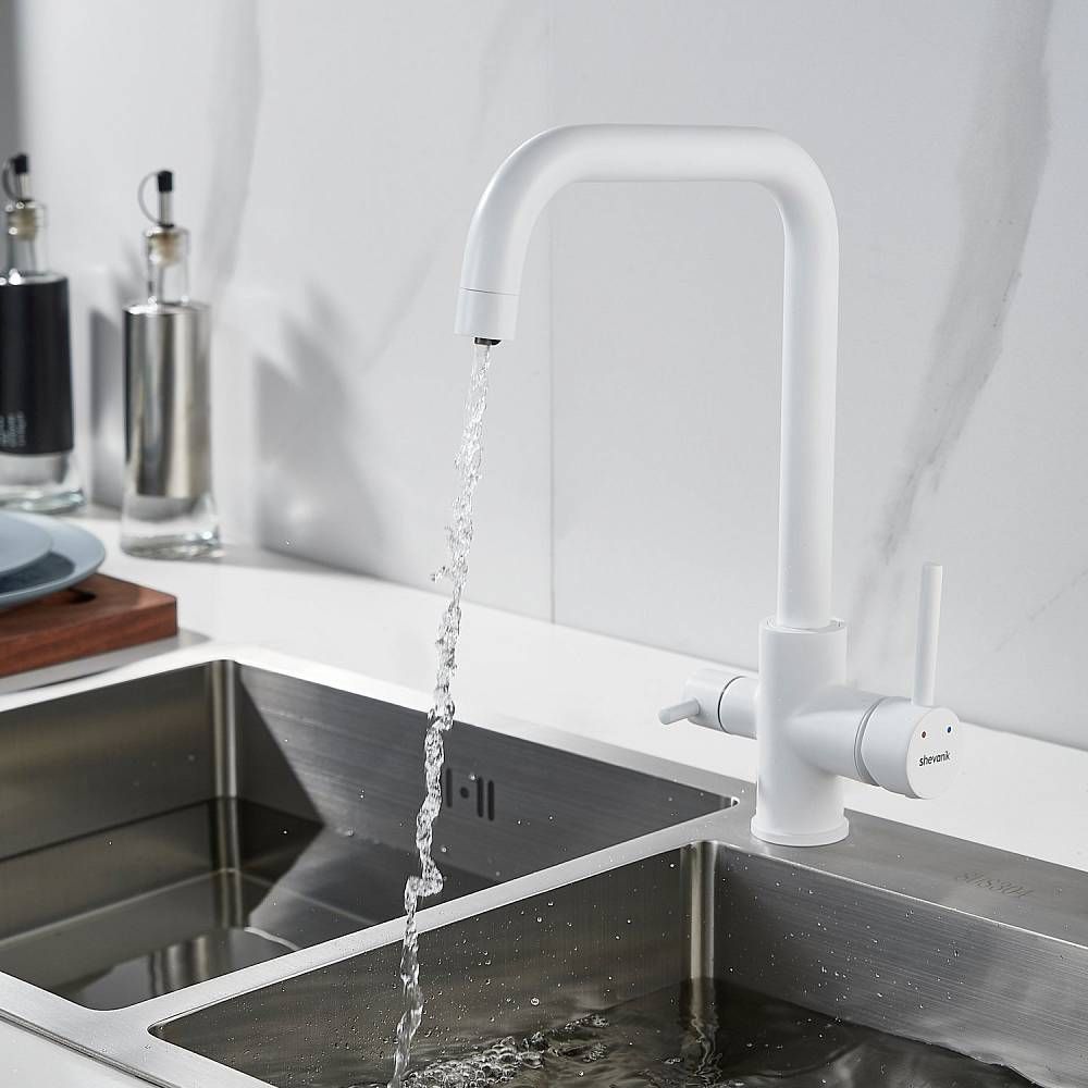 Смеситель для кухни Shevanik S228C с подключением фильтра белый купить