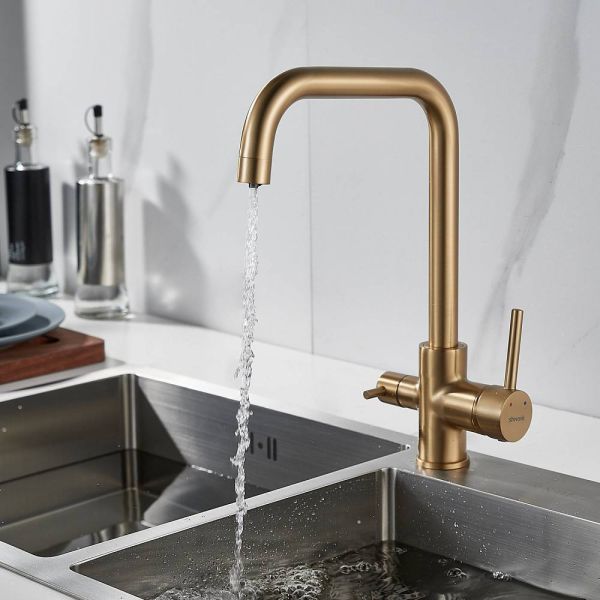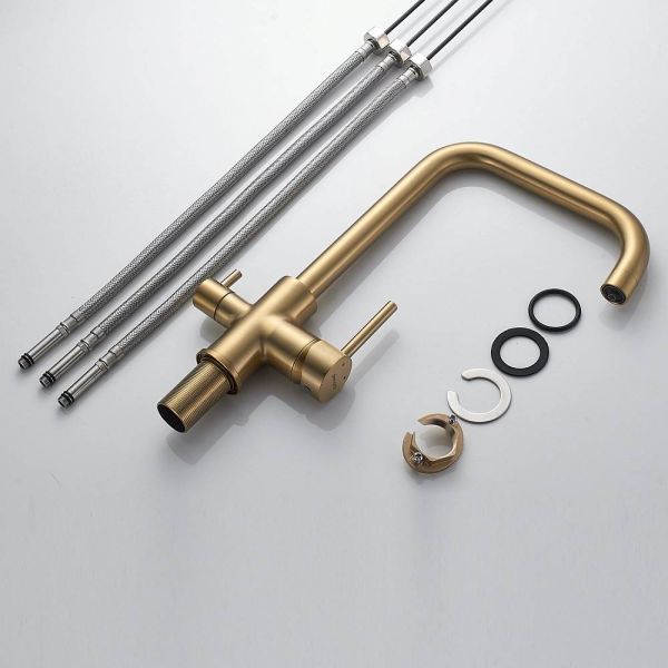Смеситель для кухни Shevanik S228G с подключением фильтра золотой сатин