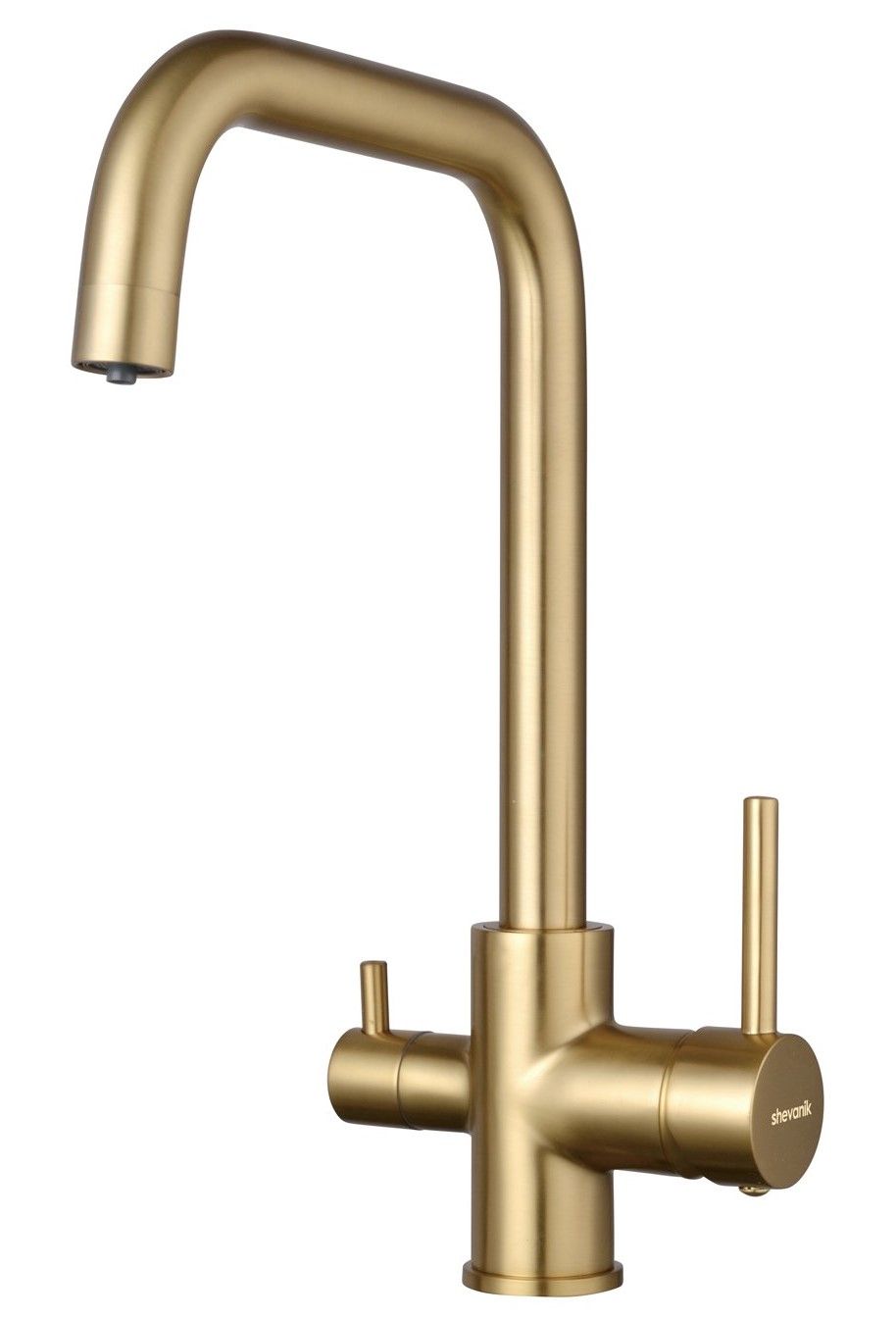 Смеситель для кухни Shevanik S228G с подключением фильтра золотой сатин купить