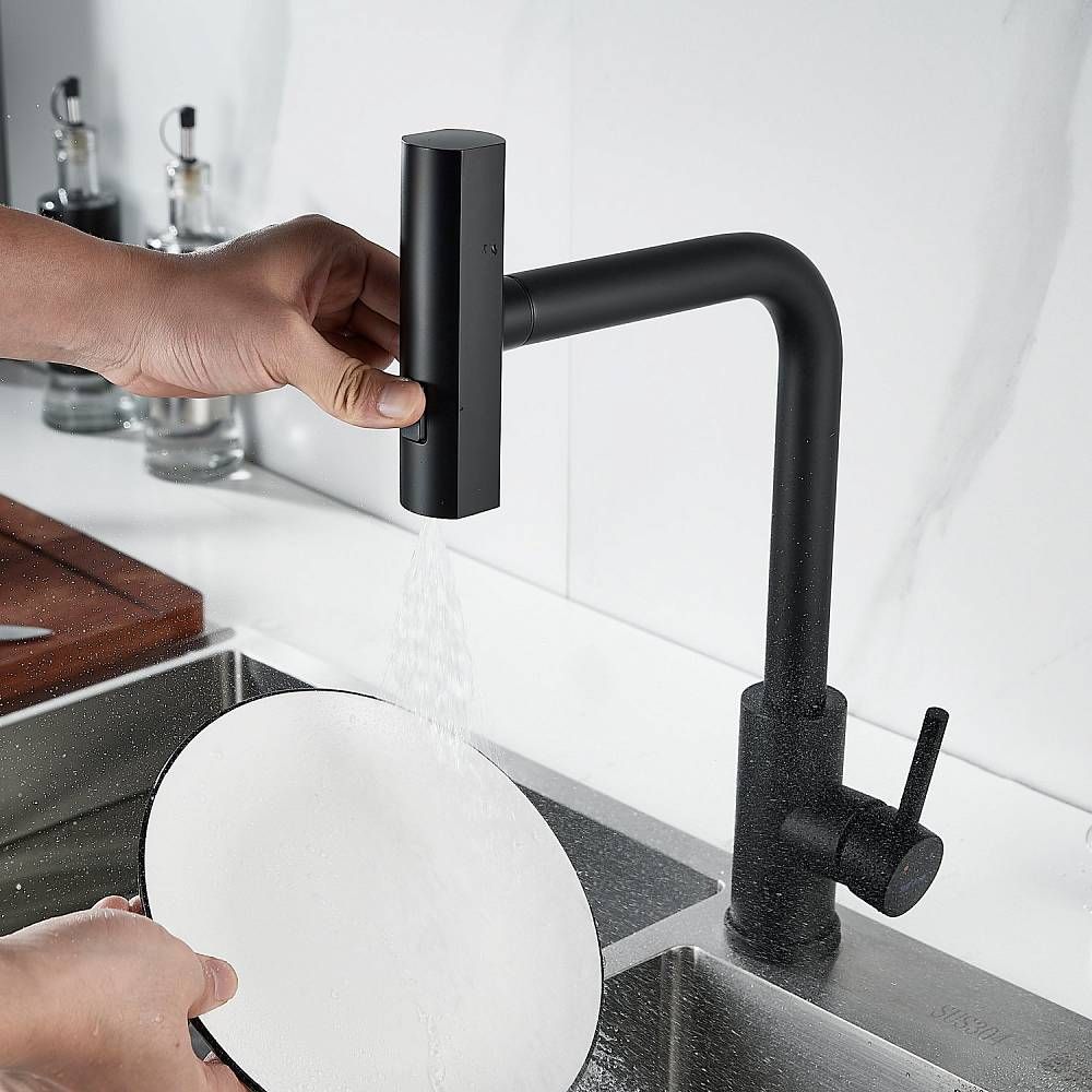 Одним из ключевых преимуществ данного смесителя является съемный выдвижной поворотный излив, который можно легко снять и повернуть в любую сторону. Излив доступен в том же цвете, что и корпус смесителя, что позволяет ему идеально сочетаться с любым кухонным интерьером.