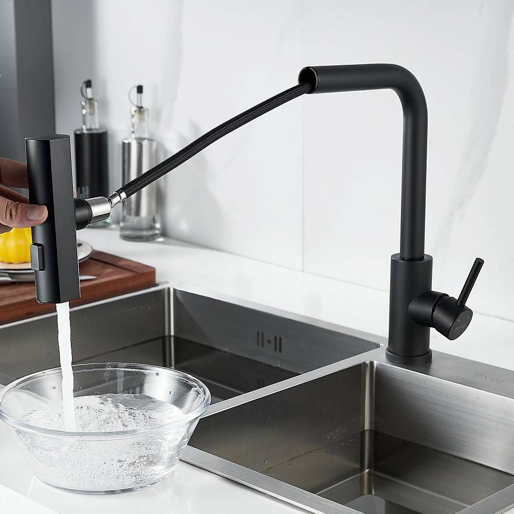 Смеситель для кухни Shevanik S263H с мультифункциональным изливом чёрный купить
