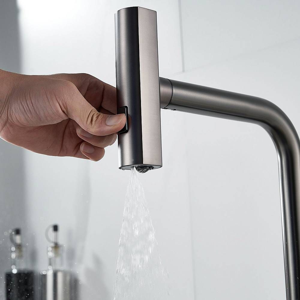 Одним из ключевых преимуществ данного смесителя является съемный выдвижной поворотный излив, который можно легко снять и повернуть в любую сторону. Излив доступен в том же цвете, что и корпус смесителя, что позволяет ему идеально сочетаться с любым кухонным интерьером.